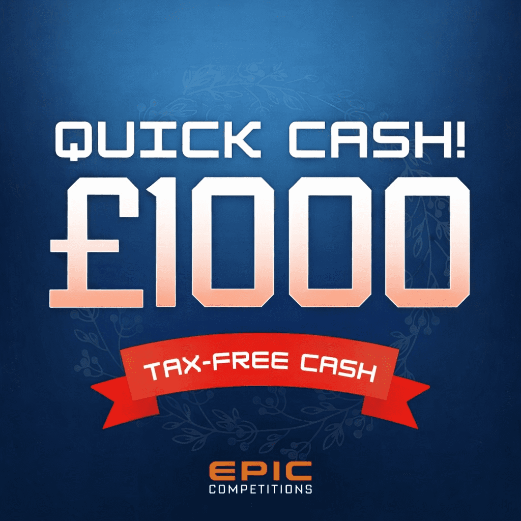 The live draw will take place on the Epic Competitions Ltd Facebook page using Google’s random number generator to select the winning ticket number from all Entrants.