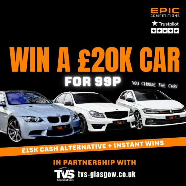 YOU CAN CHOOSE ANY VEHICLE ABOVE £20,000, BUT ANYTHING ABOVE £20,000 WILL BE DUE BY THE EPIC WINNER OF THIS COMPETITION DIRECT TO TVS-GLASGOW
