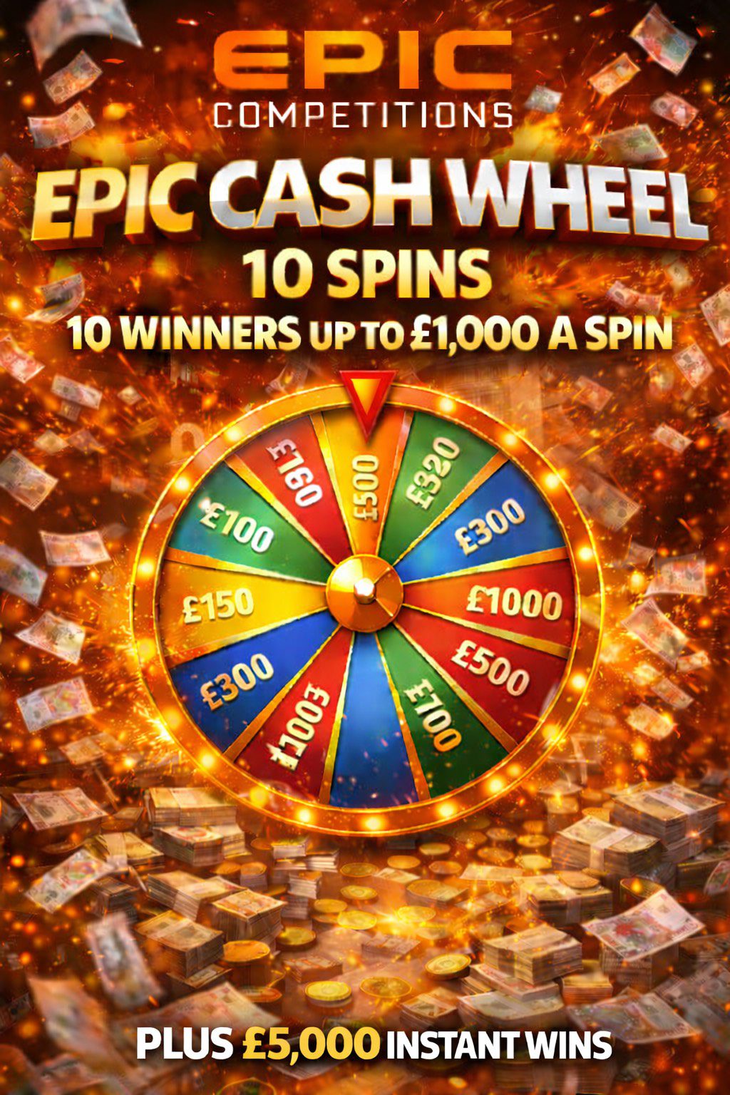 EACH WINNER WHO IS PICKED WILL GET CALLED TO SPIN THE WHEEL FOR UP TO £1000 EACH SPIN