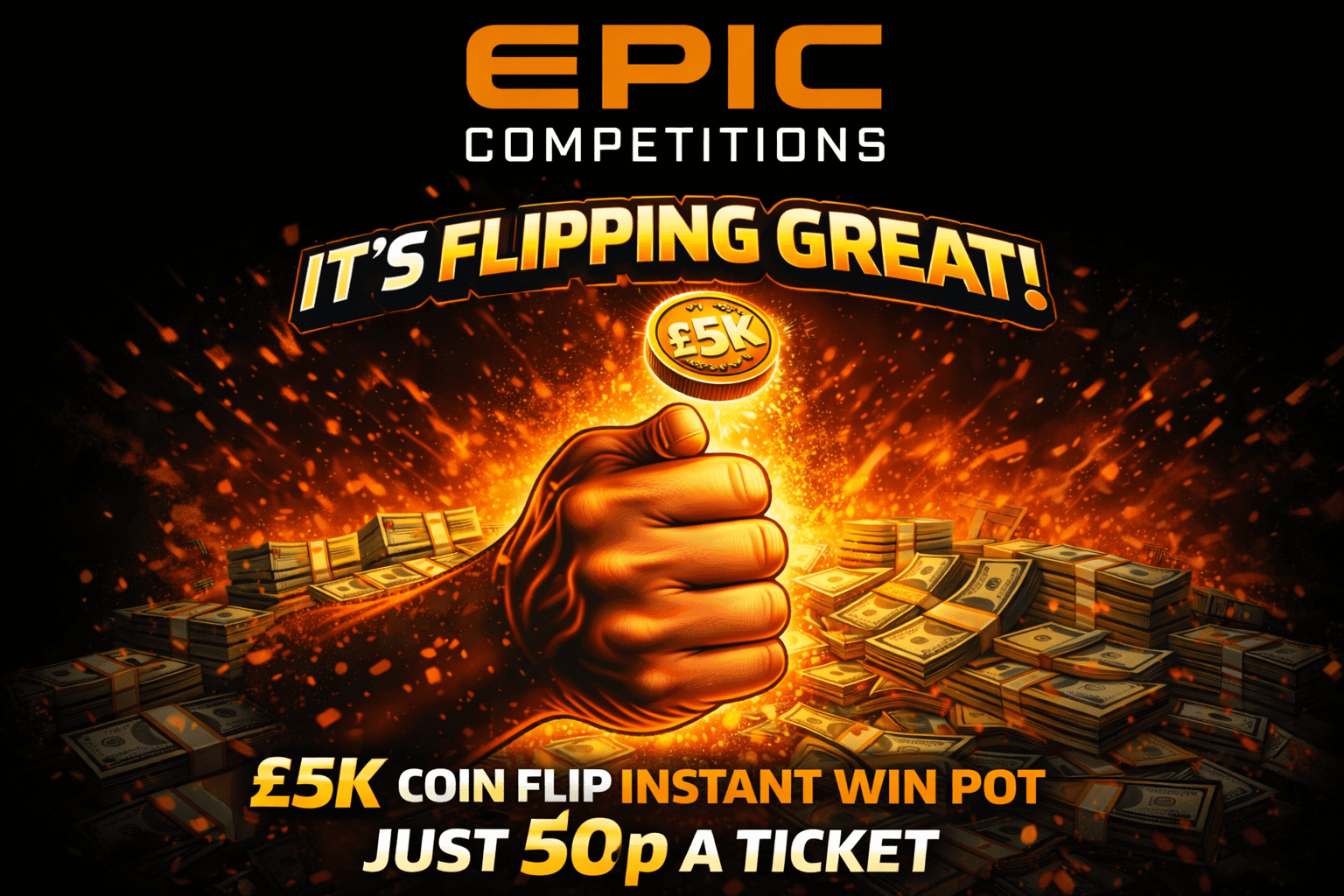 The live draw will take place on the Epic Competitions Ltd Facebook page using Google’s random number generator to select the winning ticket number from all Entrants.