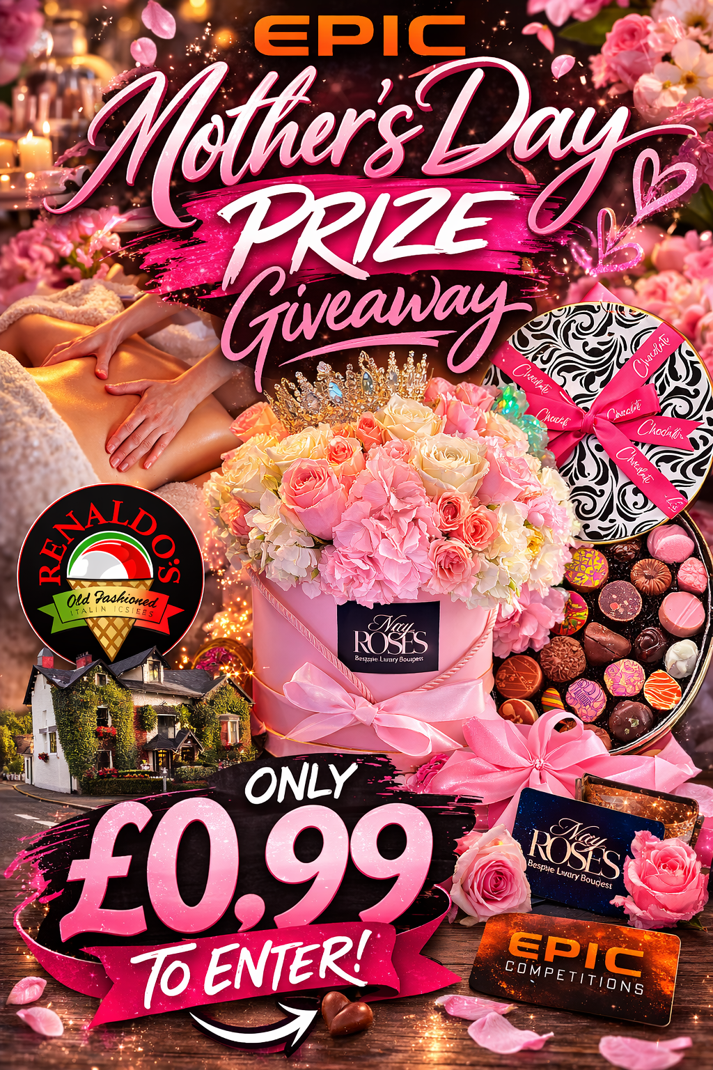 The live draw will take place on the Epic Competitions Ltd Facebook page using Google’s random number generator to select the winning ticket number from all Entrants.