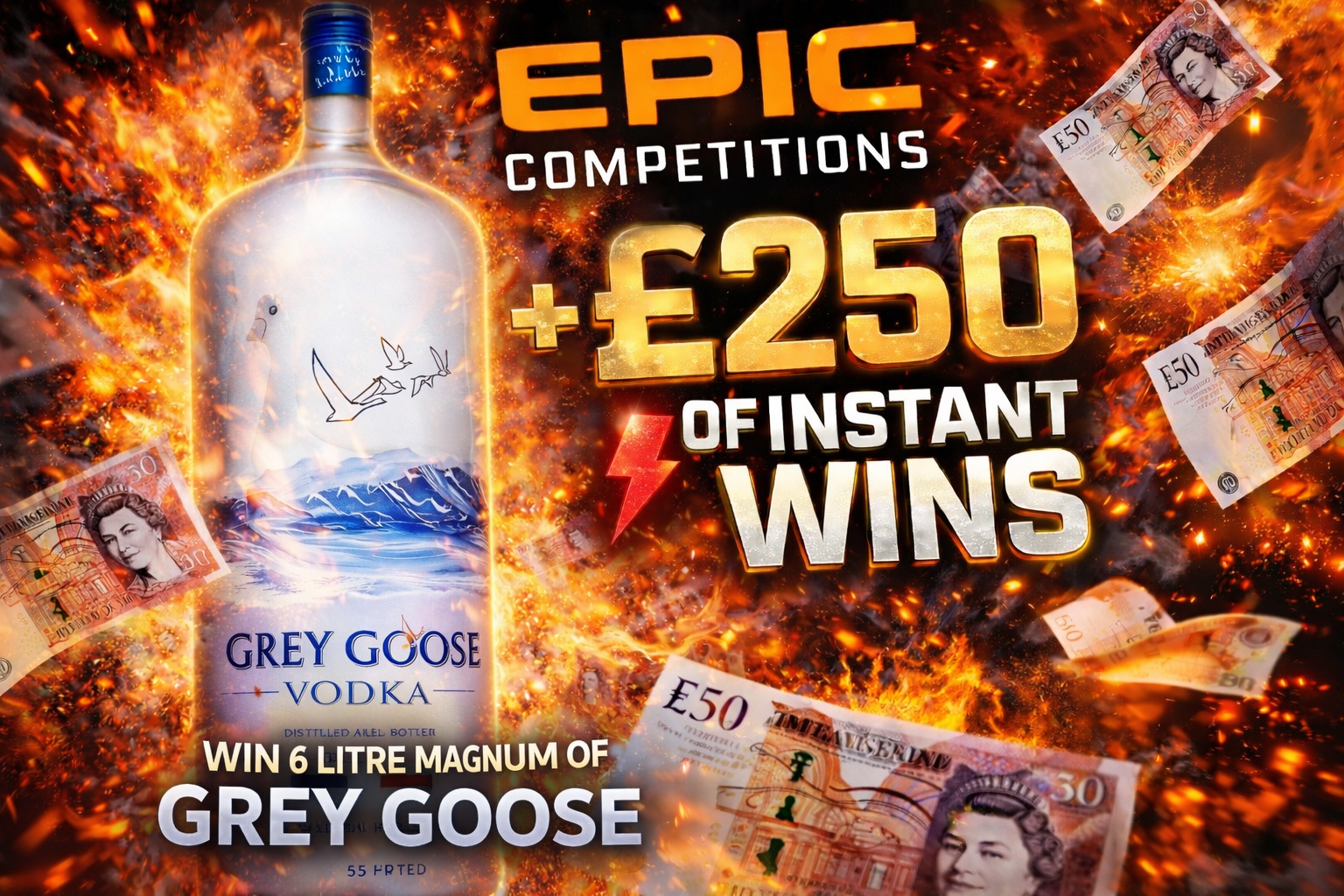 You may enter the competition online or for free by post by sending your entry to Epic Competitions Ltd on a postcard. You must have an account on Epic Competitions Ltd for your entry to be processed. All details on your entry MUST correspond to the details on your account to receive the order confirmation and ticket number.