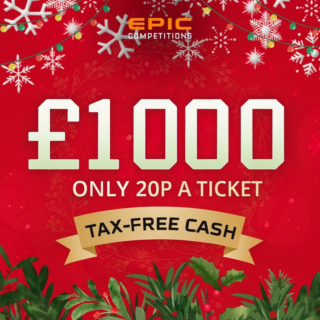 The live draw will take place on the Epic Competitions Ltd Facebook page using Google’s random number generator to select the winning ticket number from all Entrants.