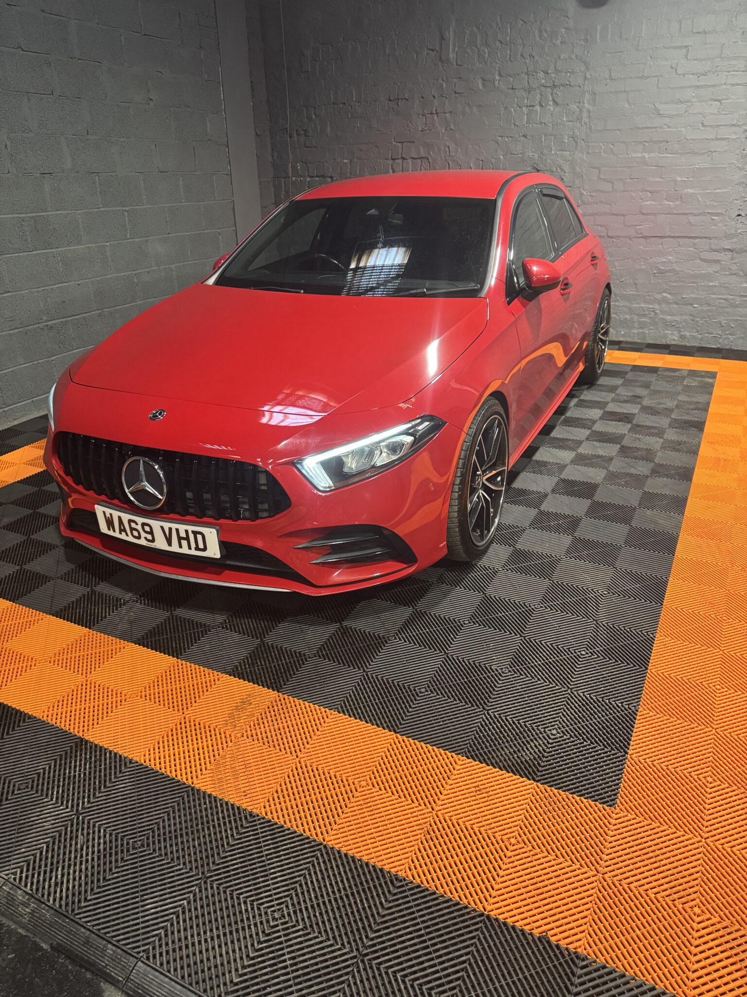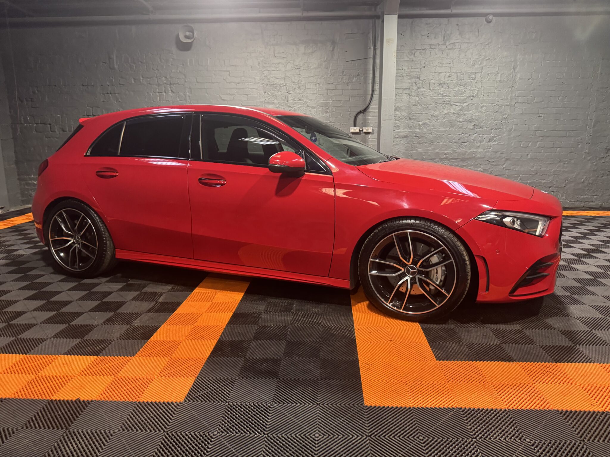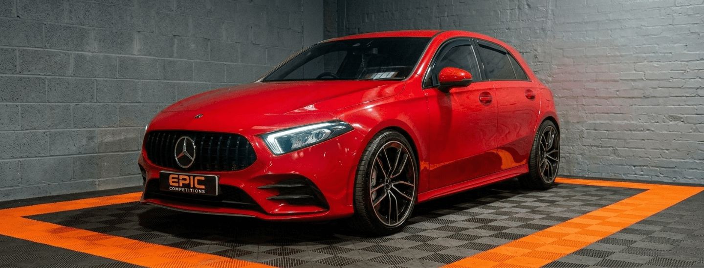 Mercedes-Benz A Class is finished in Red. With a great specification, our A Class includes features such as UPGRADED A45  19 INCH  Inch Alloy Wheels, Electric Folding Mirrors, Front and Rear Electric Windows, Privacy Glass, Air Conditioning, Bluetooth, DAB Radio, Lane Assist, Multi-Function Steering Wheel, Paddle Shift, Parking Sensors, Reverse Camera, Satellite Navigation, Speed Limiter, USB, Black Leather Trim, Central Armrest, Cup Holders, Folding Rear Seats, Heated Seats, Start/Stop Button, ISOFIX, LED Daytime Running Lights, LED Headlights, LED Tailights, Remote Central Locking
