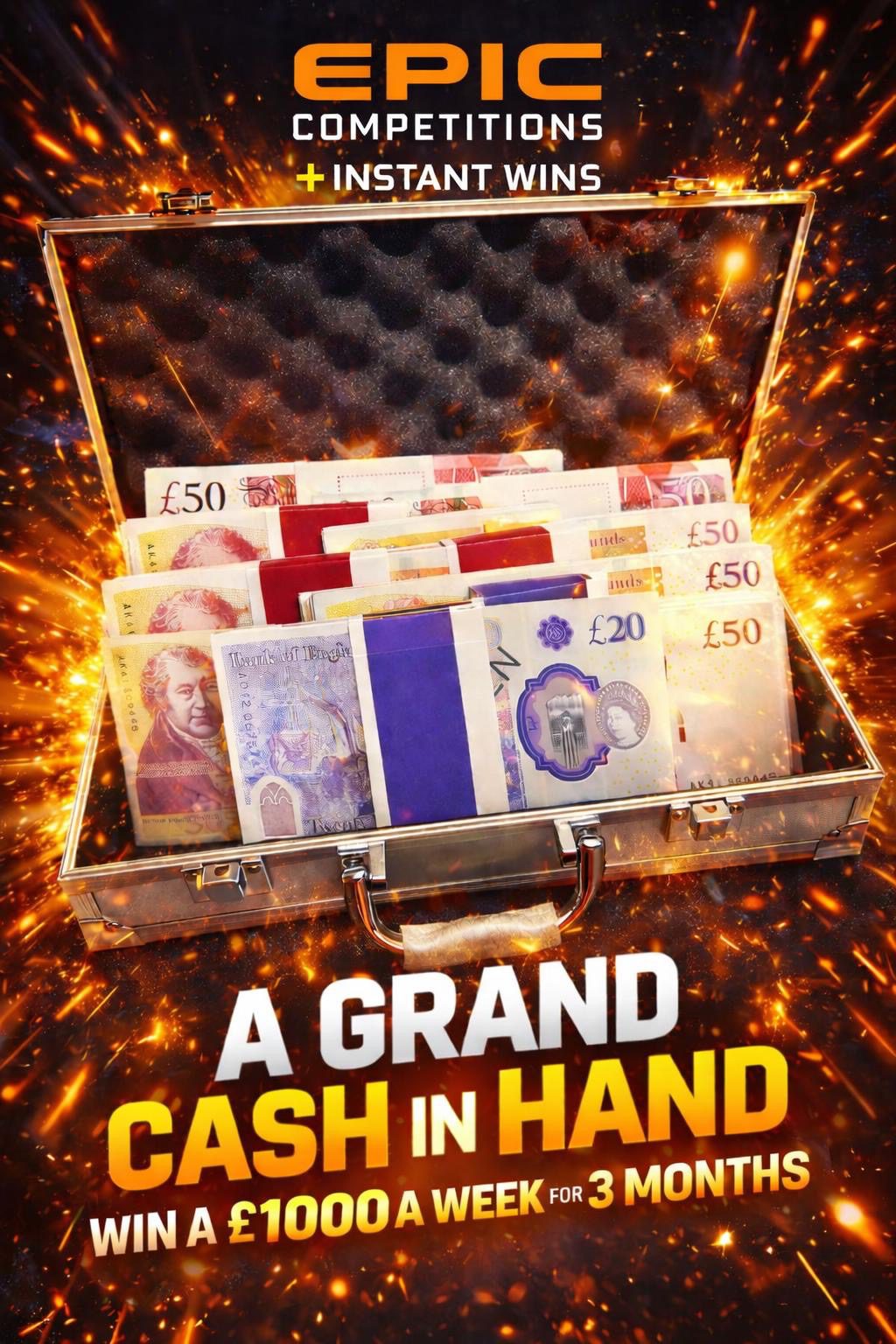 The live draw will take place on the Epic Competitions Ltd Facebook page using Google’s random number generator to select the winning ticket number from all Entrants.